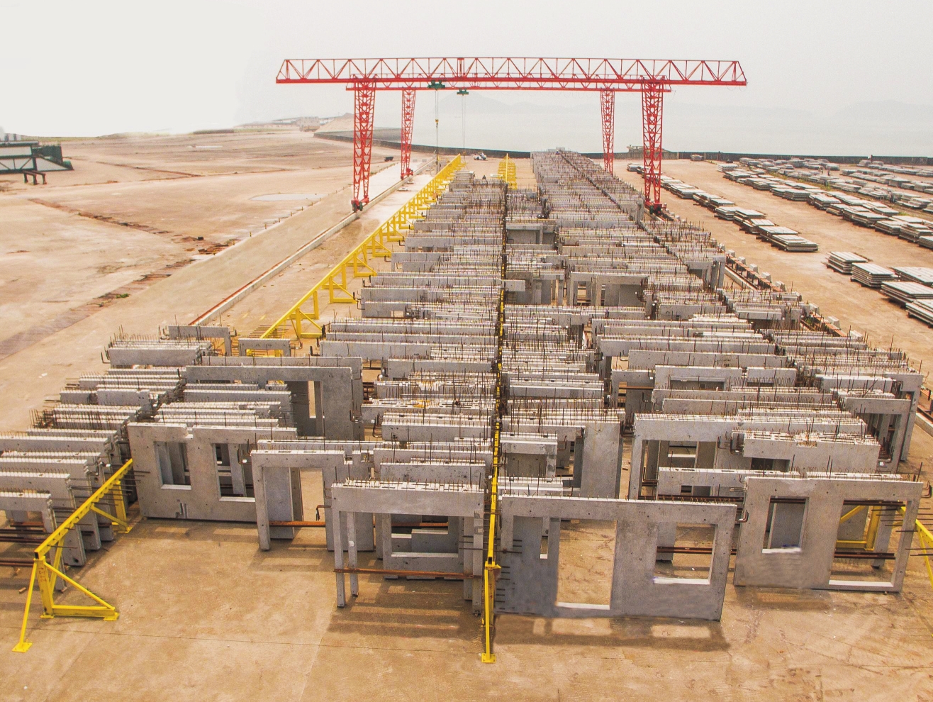 公司位于溫嶺東海之濱,松門(mén)鎮(zhèn)龍擔(dān)嶼裝配式建筑工業(yè)化科技產(chǎn)業(yè)園區(qū)內(nèi)。園區(qū)總占地面積700余畝,其中裝配式PC構(gòu)件生產(chǎn)占地200余畝,擁有30000㎡工業(yè)廠房和150畝構(gòu)件堆場(chǎng),以及25000㎡的辦公、住宿、食堂、娛樂(lè)場(chǎng)所,投入國(guó)內(nèi)先進(jìn)的自動(dòng)化環(huán)形流水生產(chǎn)線(xiàn)1條,固定模臺(tái)生產(chǎn)線(xiàn)4條,規(guī)劃年產(chǎn)預(yù)制構(gòu)件約10萬(wàn)立方砼,可生產(chǎn)疊合樓板、樓梯、內(nèi)外墻板、梁柱、陽(yáng)臺(tái)、空調(diào)板等不同類(lèi)型的構(gòu)件。